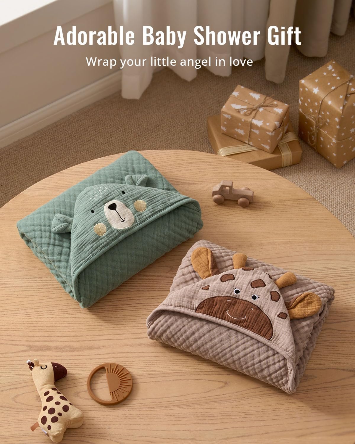 The two-pack design makes this towel set an easy choice for gifting. New parents appreciate receiving something genuinely useful, and muslin towels feel far more luxurious than standard terry cloth options. The animal hoods add charm, while the high absorbency and softness make them practical for daily use.